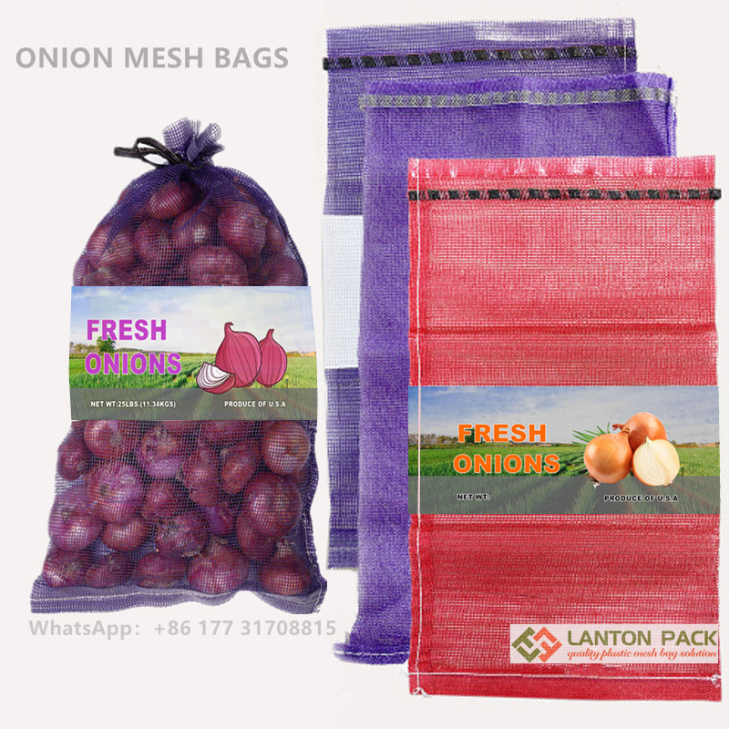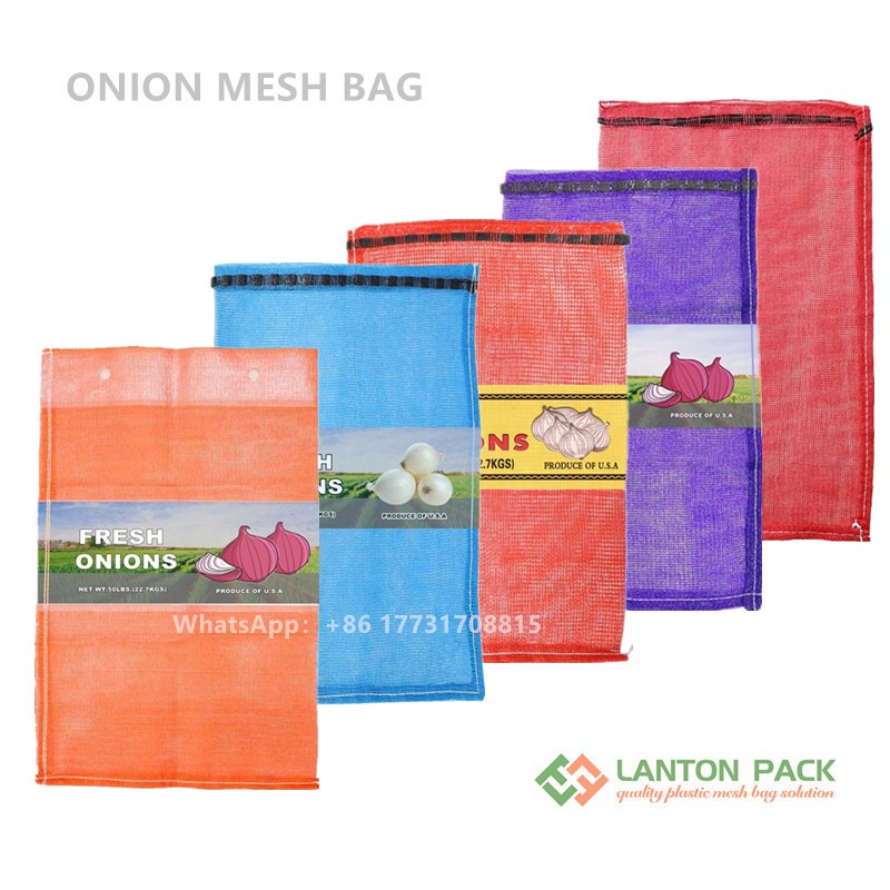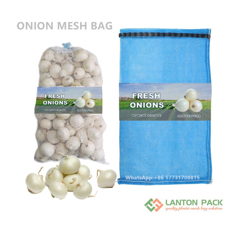 onion bag,onion mesh bag,25lb 50lb Bolsa de cebollas The advantages : - Soft texture: It has a good hand feel and causes little damage to the surface of the packaged items. - High flatness: It has a relatively flat appearance and a good visual effect. - Uniform mesh: It can provide relatively consistent protection and air permeability. - High strength: It can bear items of a certain weight and is not easy to be damaged. - Good air permeability: It is beneficial for the ventilation of the