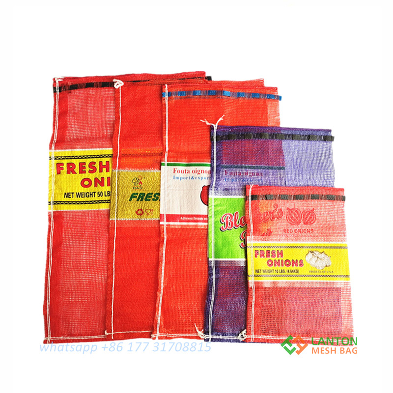 25lb onion bag Banded label mesh bag sacks BOPP leno drawstring 10lb 25lb 50lb