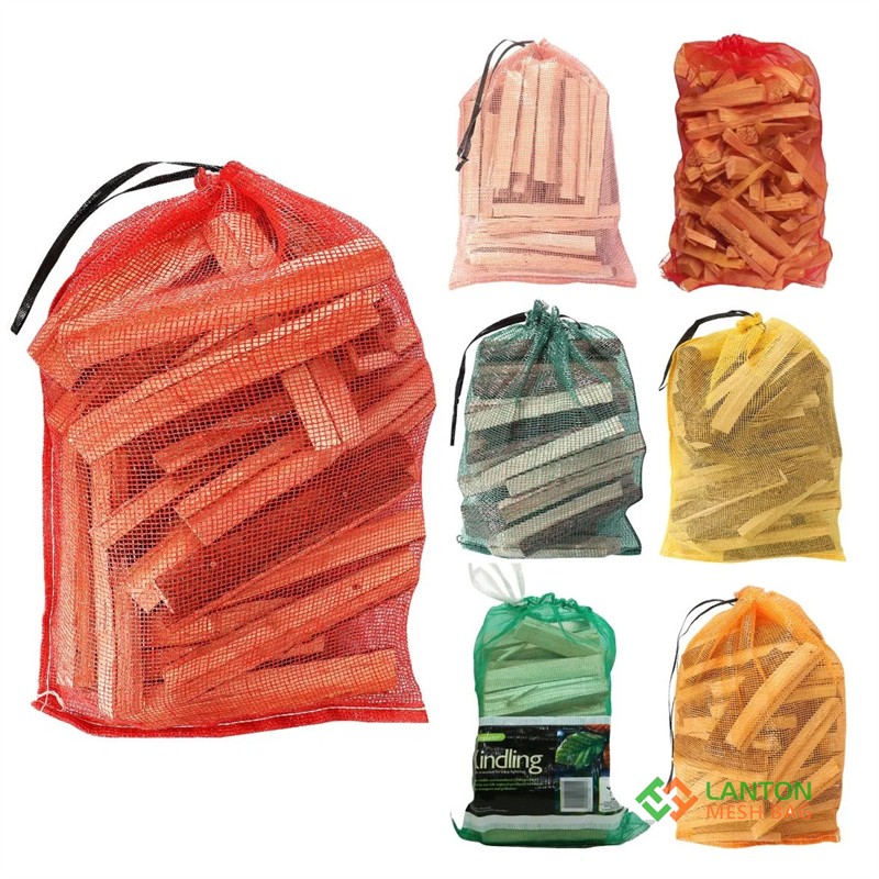 Plain firewood mesh bag; BOPP labeled leno mesh bag