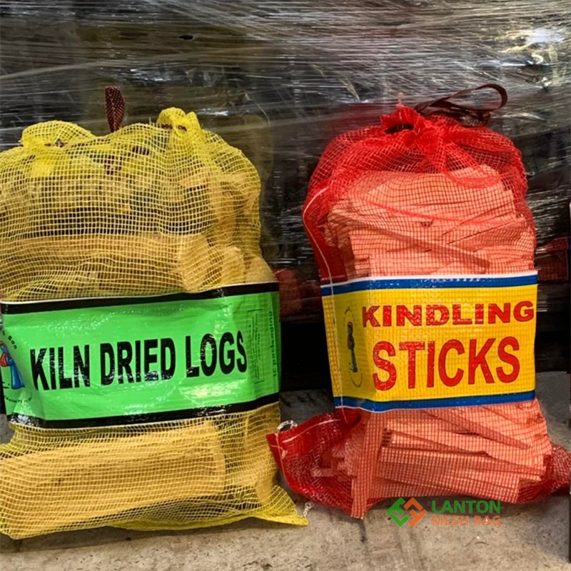 Plain firewood mesh bag; BOPP labeled leno mesh bag