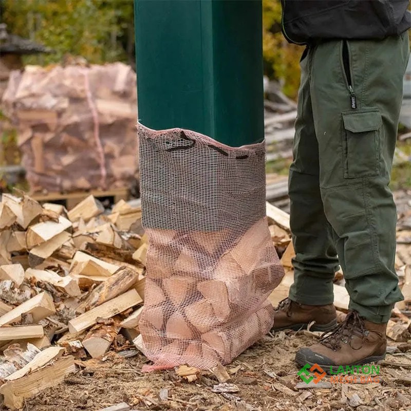 firewood plastic mesh bag *MATERIAL: PP *CAPACITY: 10kg/20kg/25kg; 20lb/25lb/50lb *APPLICATION: log, Kindling, kiln dried firewood. *Feature: Material 100% recyclable, environment friendly; can be UV stabilized to extend outdoor service life; more sturdy than regular bags; better tear resistance