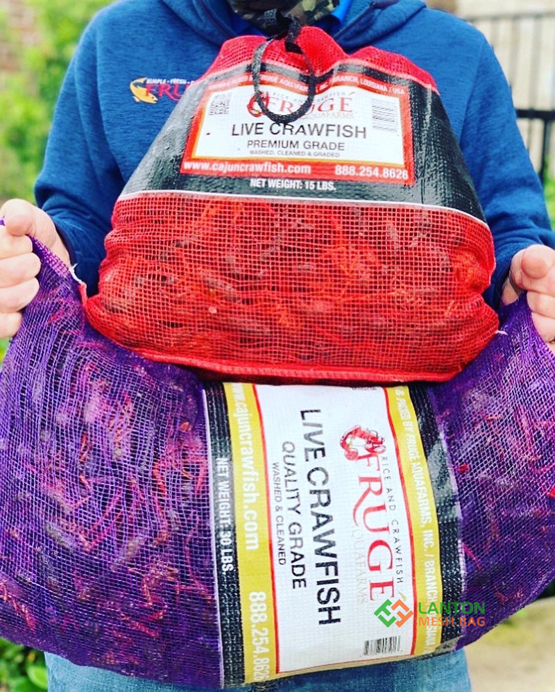 Crawfish Sacks, Heavy Duty leno mesh bag 15lb/ 30lb/ 50lb *Name: live crawfish mesh sack/ crawfish mesh bag *Material: PP *Color: purple,red,green,yellow *Size:18”x30”; 45x75cm, or customized size *Bag weight:50g *Load weight:25-35kg