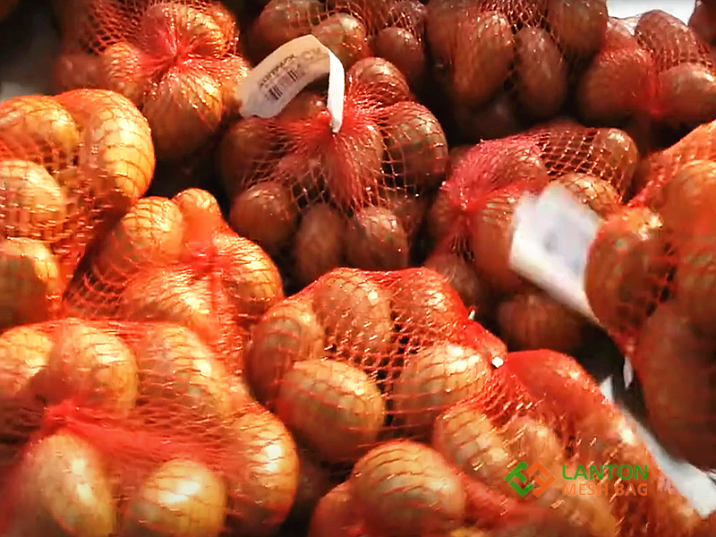 Leno-style mesh bags are commonly used for onions and potatoes. They offer strong structure and excellent ventilation.