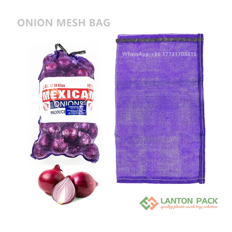 onion bag,onion mesh bag,25lb 50lb Bolsa de cebollas The advantages : - Soft texture: It has a good hand feel and causes little damage to the surface of the packaged items. - High flatness: It has a relatively flat appearance and a good visual effect. - Uniform mesh: It can provide relatively consistent protection and air permeability. - High strength: It can bear items of a certain weight and is not easy to be damaged. - Good air permeability: It is beneficial for the ventilation of the