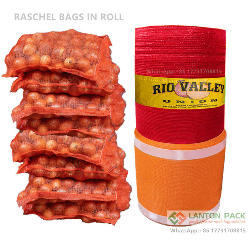 Roll stock mesh bag,raschel bags on rolls onion potato bag *MATERIAL: PE *CAPACITY: 3kg/5kg/10kg/20kg/25kg/30kg; 8lb/10lb/20lb/25lb/50lb *REGULAR SIZE: 31*39cm 42*63cm 45*65cm 50*72cm 54*78cm,or Customise *APPLICATION: Onion,potato,carrot; orange,lemon,citrus; *Feature: Designed for automated packaging line, greatly improve sorting and packaging efficiency, reduce labor costs Material 100% recyclable, environment friendly